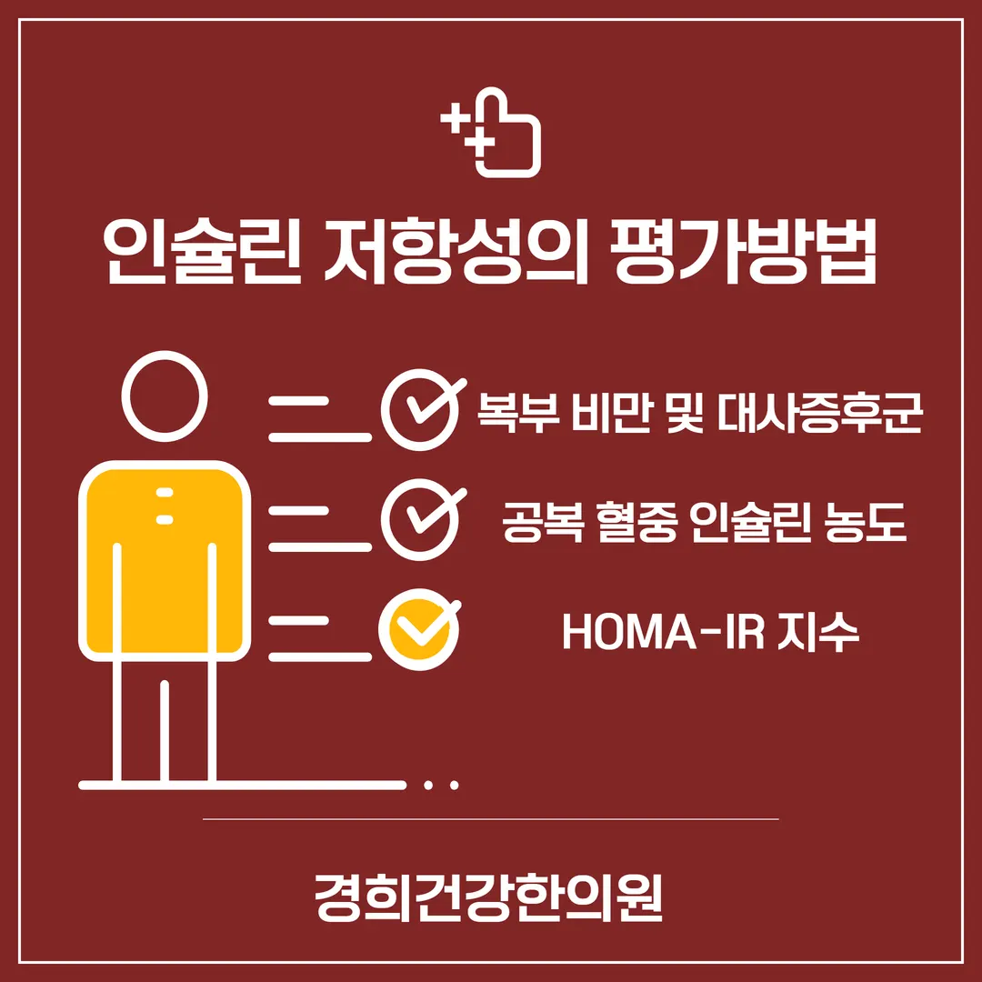 정확한 평가를 위해 공복 인슐린 농도와 HOMA-IR 지수를 활용할 수 있습니다.