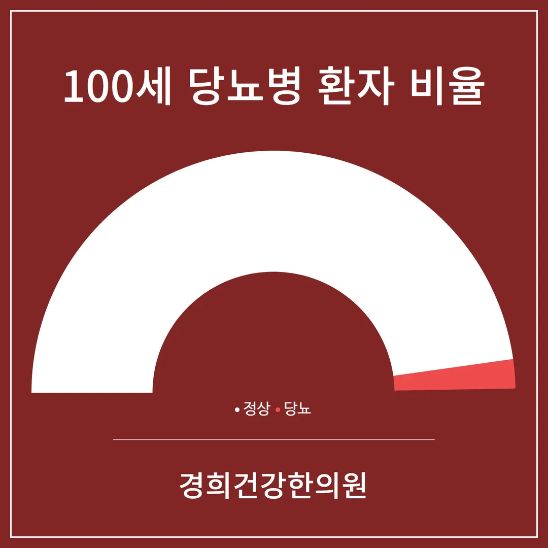 한국 65세 이상 노인의 당뇨병 유병률이 10~20%에 달하는 것에 비해, 100세인들에게서는 약 5% 미만에서만 당뇨병이 나타났다고 합니다.