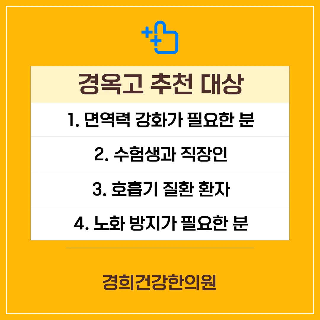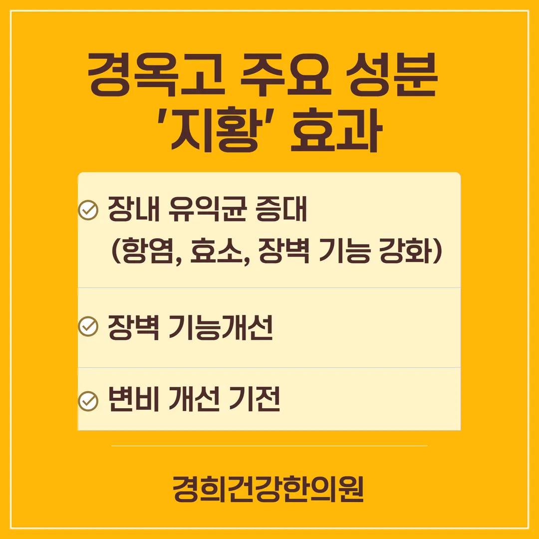 경옥고는 단순한 보약을 넘어 장 건강과 대사 질환 예방에 도움을 주는 치료약입니다. 특히 변비나 장내 불균형으로 고생하는 환자들에게 적합하며, 면역력을 강화하고 전반적인 장 기능을 개선하는 데 효과적입니다.