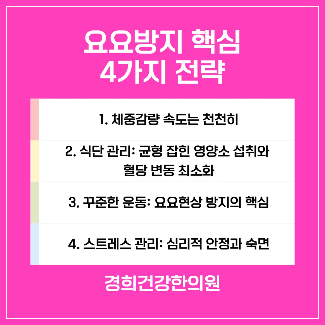 체중 감량은 많은 사람들에게 중요한 건강 목표지만, 다이어트 후 체중이 다시 증가하는 요요현상은 신체적, 정신적 건강에 부정적인 영향을 미칠 수 있습니다. 요요현상을 방지하기 위해서는 체중 감량 과정과 이후의 관리를 철저히 계획하고 실행해야 합니다. 여기서는 요요현상을 방지하는 네 가지 핵심 전략을 소개합니다.