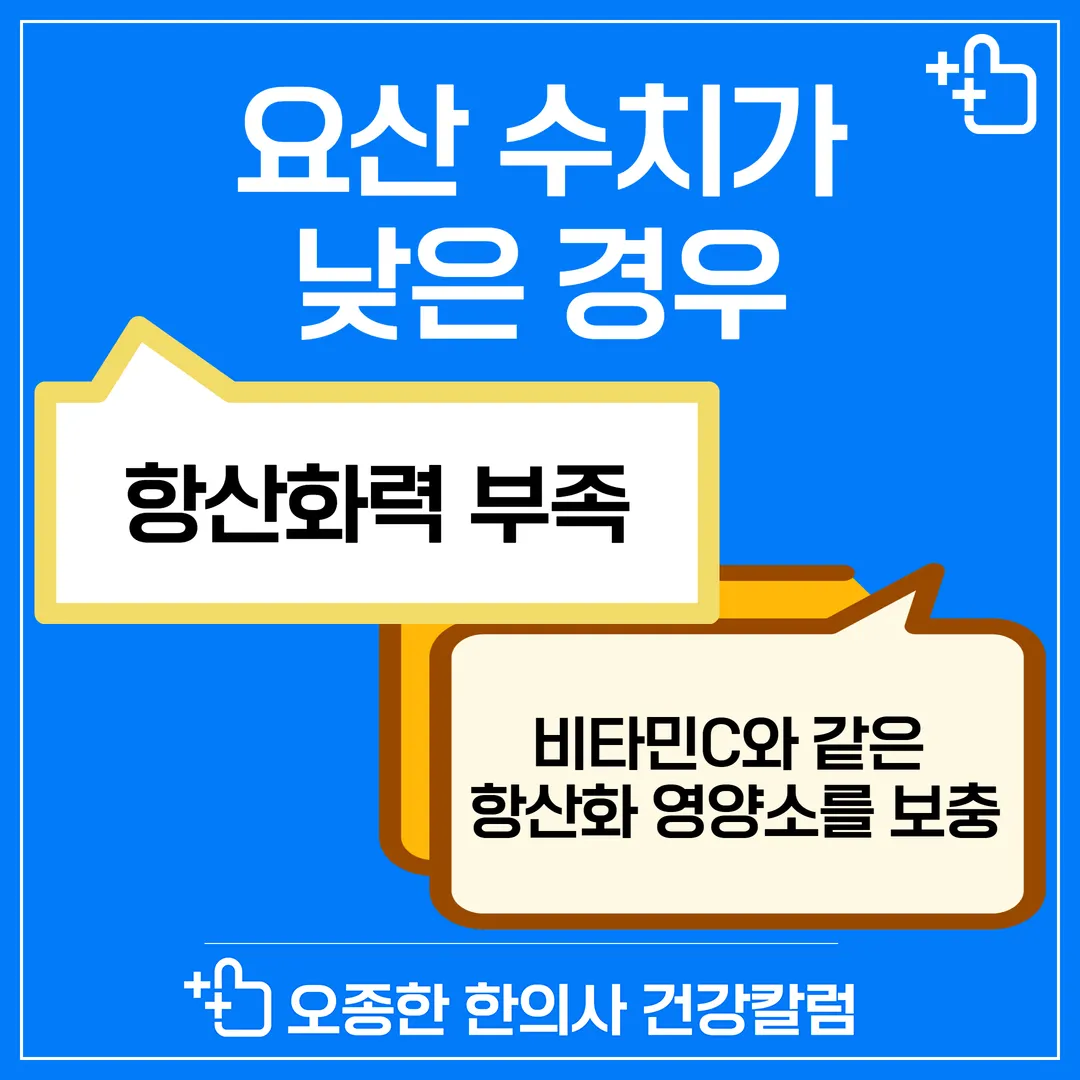 요산은 강력한 항산화제로 작용하기 때문에, 수치가 낮으면 항산화력이 부족하다는 의미입니다.